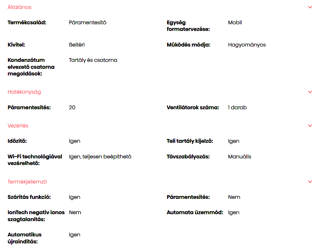 A Hisense D20HW Páramentesítő (20L/nap) fontos tulajdonságai: