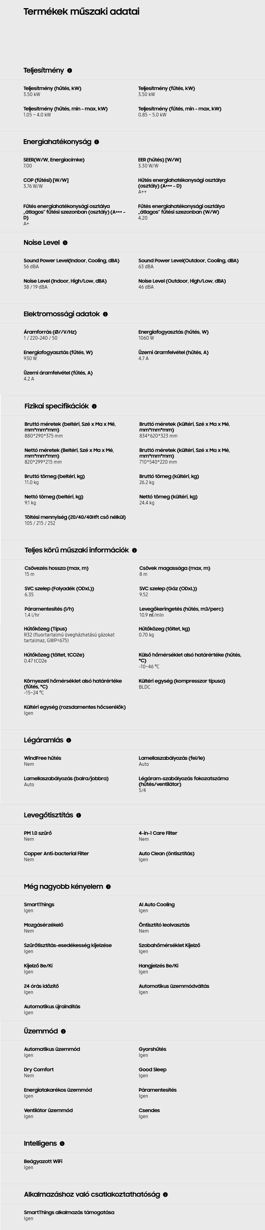 A Samsung AR50F12C1AHNEU Cebu S2 Inverteres Split klíma fontos tulajdonságai: